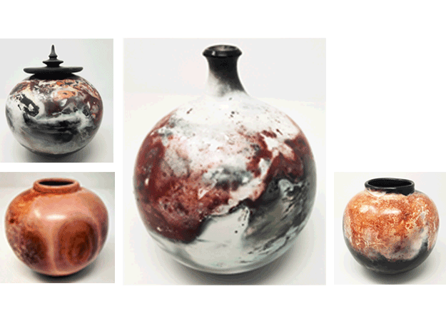 I am fascinated by the fire markings on naked clay. My pots are fumed in a paper kiln for colour or reduced black in sawdust.